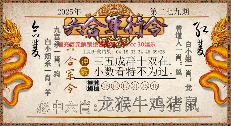 281期⑨肖 | 蛇马鼠牛羊鸡龙猪虎 | 开: 羊47 |